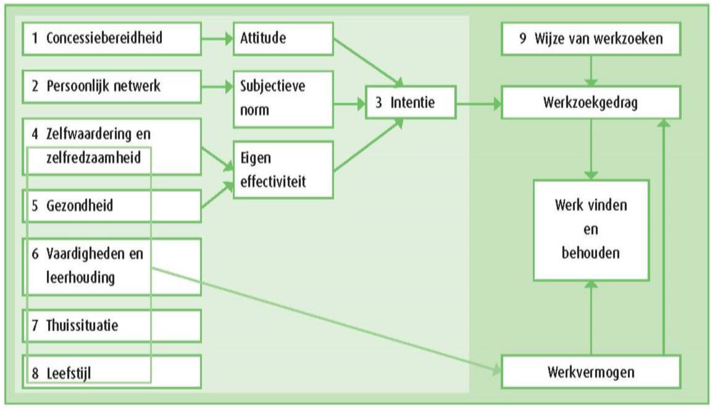 - Prochaska, J.O., DiClemente & Norcross. ‘In search of how people change: Applications to addictive behaviors’. American Psychologist,47, 1992, 1102 - 1114.- AKC Onderzoekscahier 10. Scan Werkvermogen Werkzoekenden. AKC, november 2012.-AKC Onderzoekscahier 14. Methodisch vaststellen van secundaire factoren bij re-integratie. AKC, oktober 2014.