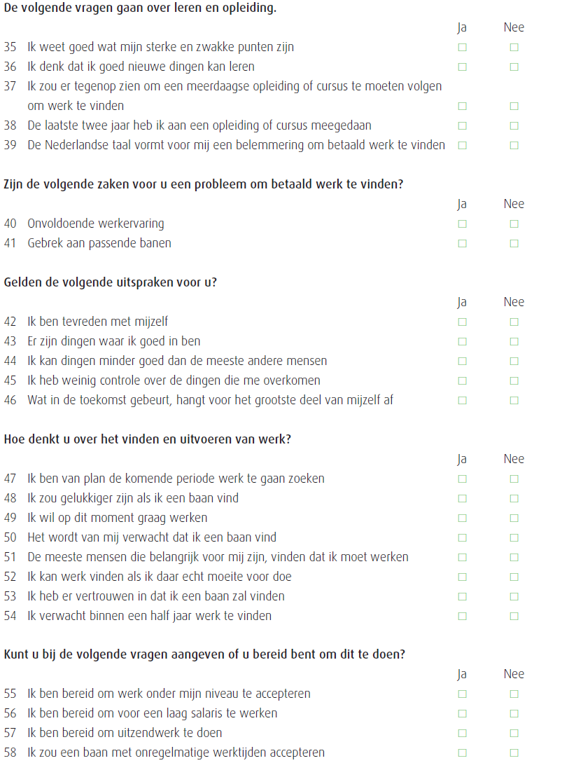 Vragenlijst werkvermogen en versterkende factoren voor werkzoekenden