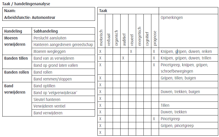 Voorbeeld van een analyse: automonteur | Arbeidsdeskundigen