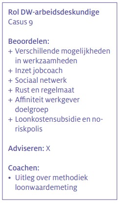 Casus 9 betreft een werknemer met startkwalificatie die werkzaam is bij een bedrijf in de groensector. Het bedrijf voert geen expliciet beleid op inclusief ondernemen. In de praktijk worden echter veel acties ingezet om werknemers met een arbeidsbeperking in dienst te nemen en te houden. Reden hiervoor is dat het (kleine) bedrijf wordt gedragen door één werkgever met een sterke visie op inclusief ondernemen.