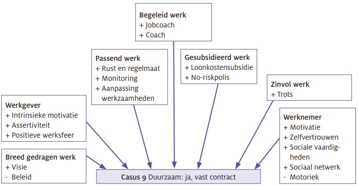 De voorspelbaarheid blijft een belangrijke bevorderende factor voor de duurzaamheid van de plaatsing. Zolang er structuur is en de werknemer weet wat er van hem verwacht wordt, gaat het goed. Het lukt de werkgever om deze structuur te waarborgen en het gaat zelfs zo goed dat de werknemer een vast contract heeft gekregen. Werknemer werkt vol zelfvertrouwen en is trots op zijn werk. Volgens de DW-arbeidsdeskundige spelen de intrinsieke motivatie van de werkgever om met de doelgroep aan de slag te gaan en de verschillende mogelijkheden binnen het bedrijf om aan te sluiten bij de kwaliteiten en aandachtspunten van de werknemer hier een belangrijke rol bij. Daarnaast blijken de loonkostensubsidie, no-riskpolis, sfeer op het werk en begeleiding van de jobcoach belangrijke voorwaarden.