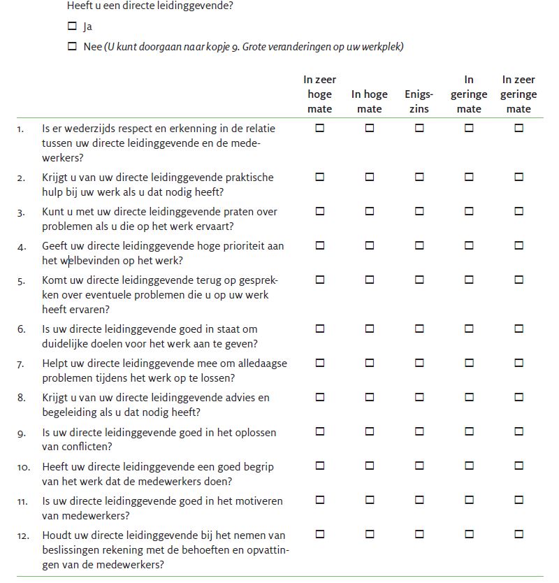 De vragen op deze pagina gaan over uw directe leidinggevende op uw werkplek