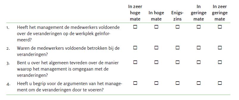 10 Denk bij de volgende vragen na over hoe het management boven u de wijzigingen op uw werkplek heeft gecommuniceerd.