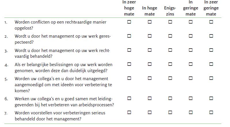 Indien beide vragen met ‘nee’ zijn beantwoord gaat u door naar kopje 11. Vertrouwen, rechtvaardigheid en het betrekken van medewerkers op uw werkplek