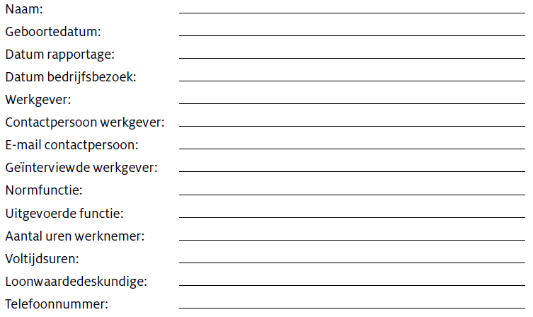 Informatie over de inhoud van het werk en de werkomgeving van de werknemer voor wie de loonwaarde vastgesteld moet worden, de werksituatie, de belasting in het werk en eventuele knelpunten in het werk.