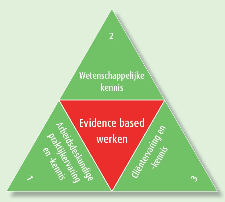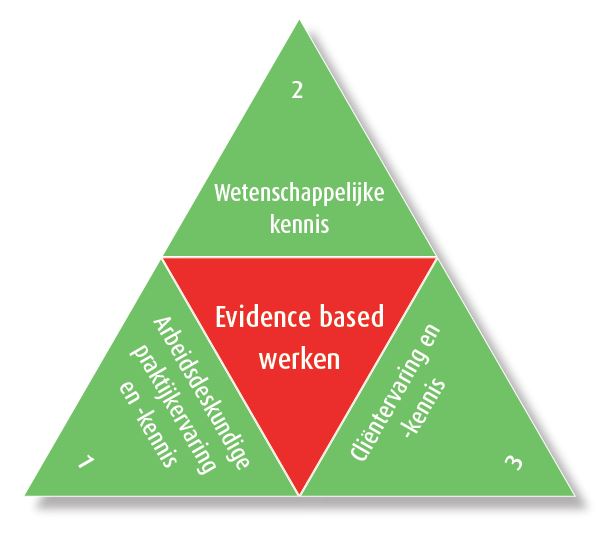 Eigenaarschap van sturing op adoptie van kennisdeling, kennisgebruik en evidence-based werken. Elke arbeidsdeskundige heeft de driehoek van evidence in zijn haarvaten en past deze driehoek op een intrinsiek gemotiveerde manier toe. | De individuele arbeidsdeskundige en de organisaties onderschrijven eigenaarschap van de driehoek van evidence. | Vraag de NVvA dit expliciet in de beroepsnorm te benoemen en deze visie actief uit te dragen. Vraag de NVvA de individuele arbeidsdeskundigen een uitspraak te laten doen over eigenaarschap van de driehoek van evidence. Vraag de NVvA de organisaties waar arbeidsdeskundigen werken dit uitgangspunt ook te onderschrijven. Vraag de NVvA te onderzoeken hoe eigenaarschap van de driehoek van evidence te integreren is in de certificeringseisen. Vraag de SRA het eigenaarschap van de driehoek van evidence te integreren in de registratie-eisen en de behandeling van tuchtzaken.