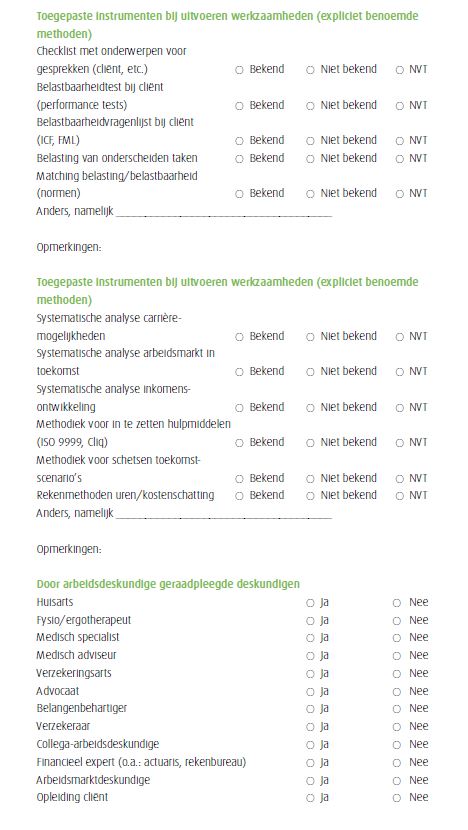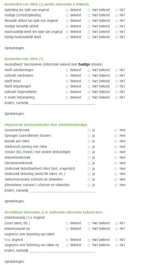 Bijlage 3 Checklist voor de analyse van rapporten van arbeidsdeskundigen | Arbeidsdeskundigen