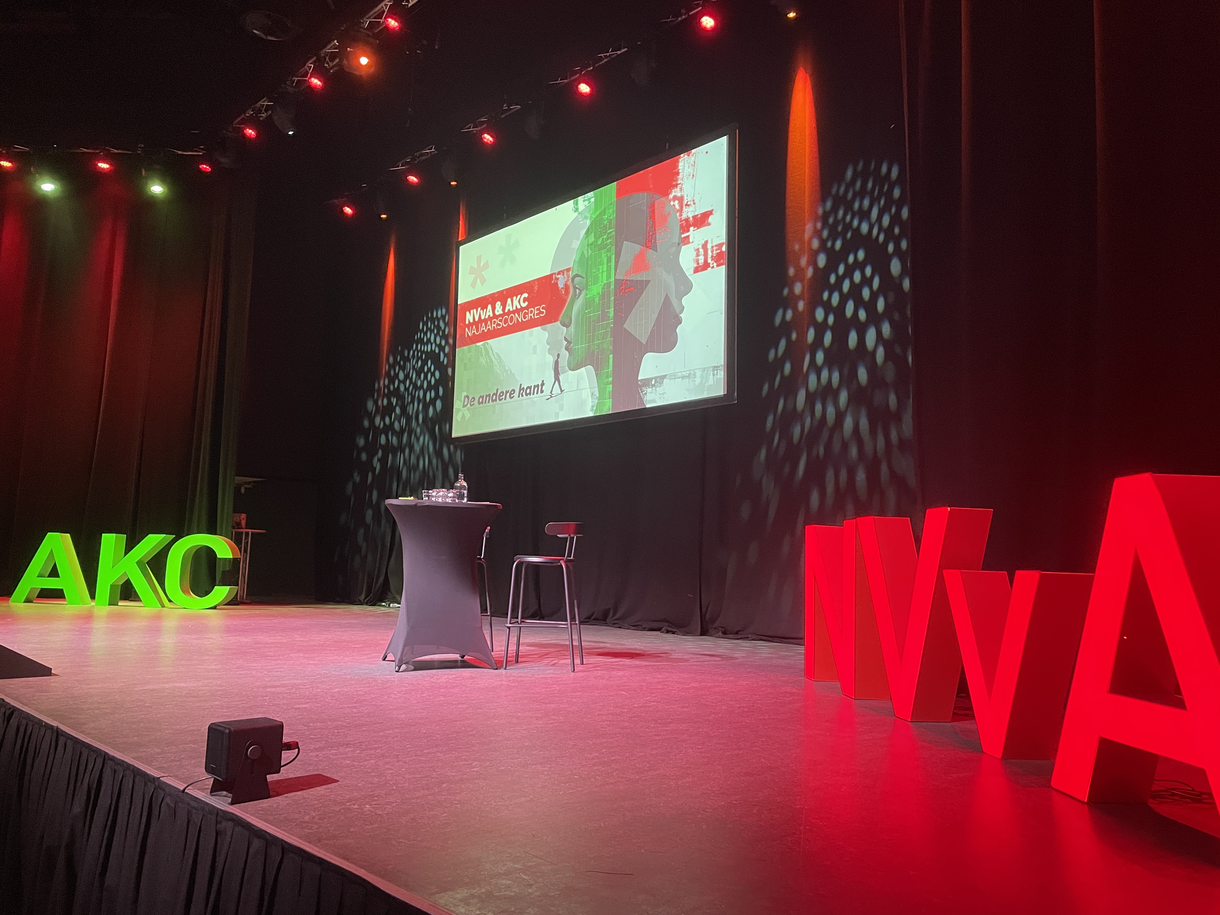 Wat een dag! In een volle Basiliek in Veenendaal kwamen meer dan zevenhonderd arbeidsdeskundigen samen om de andere kant te ontdekken: de andere kant van ons vak, van samenwerking, van kijken, denken en doen. Een congres vol energie, verdieping én verrassende perspectieven. Dagvoorzitter Mieke Rabou, NVvA voorzitter Bert van Swam en AKC-directeur Marianne Holleman openden de dag met een duidelijke boodschap: de andere kant gaat niet over tegenstellingen, maar over verbinding. Over het lef om ons vak vanuit nieuwe brillen te bekijken — en elkaar daarin op te zoeken.