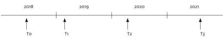 Figuur 2.2 | Schematische weergave van meetmomenten in arbeidsmarktregio’s Rijk van Nijmegen en Twente