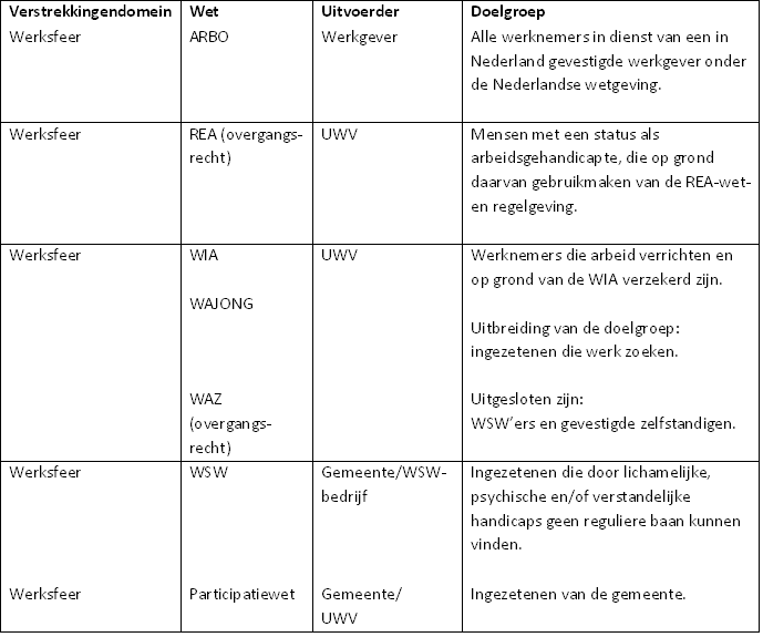 In deze fase gaat het om het wettelijk kader, de uitvoerder en de doelgroep. De cliënt heeft te maken met regelingen op het gebied van werk, persoonlijke levenssfeer en onderwijs: