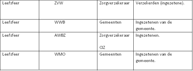 Voor ondersteuning in de levenssfeer kan de cliënt aanspraak maken op de volgende regelingen: