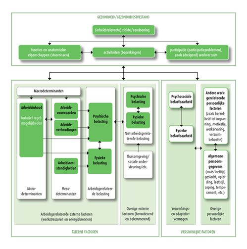 Het ICF-schema – waarbij ICF staat voor International Classification of Functioning, Disability and Health – biedt een internationaal en algemeen geaccepteerd globaal theoretisch kader voor de beschrijving van participatieproblemen in relatie tot gezondheidsproblemen. Het ICF-schema is ontwikkeld door de World Health Organization (WHO) en beschrijft in eenduidige taal het functioneren van mensen en de factoren die hierop van invloed zijn. Het model geeft aan hoe vanuit verzekeringsgeneeskundig, bedrijfsgeneeskundig én arbeidsdeskundig perspectief tot de gevraagde analyse van de relevante factoren voor het arbeidsvermogen kan worden gekomen. De methode vormt de basis voor de beeldvorming van het arbeidsvermogen van een cliënt, de voorwaarden voor de werkomgeving en – indien aan de orde – de voorwaarden voor begeleiding naar werk. De methode is universeel en wetonafhankelijk toepasbaar.Bovendien is het ICF-schema leidend op het gebied van wetenschappelijk onderzoek dat het werkveld van de arbeidsdeskundige raakt. Arbeidsdeskundigen kunnen bij het beschrijven van de disbalansen en het in kaart brengen van de mogelijke activiteiten aansluiten bij de terminologie van het ICF-schema.